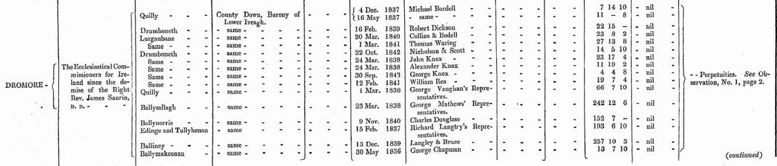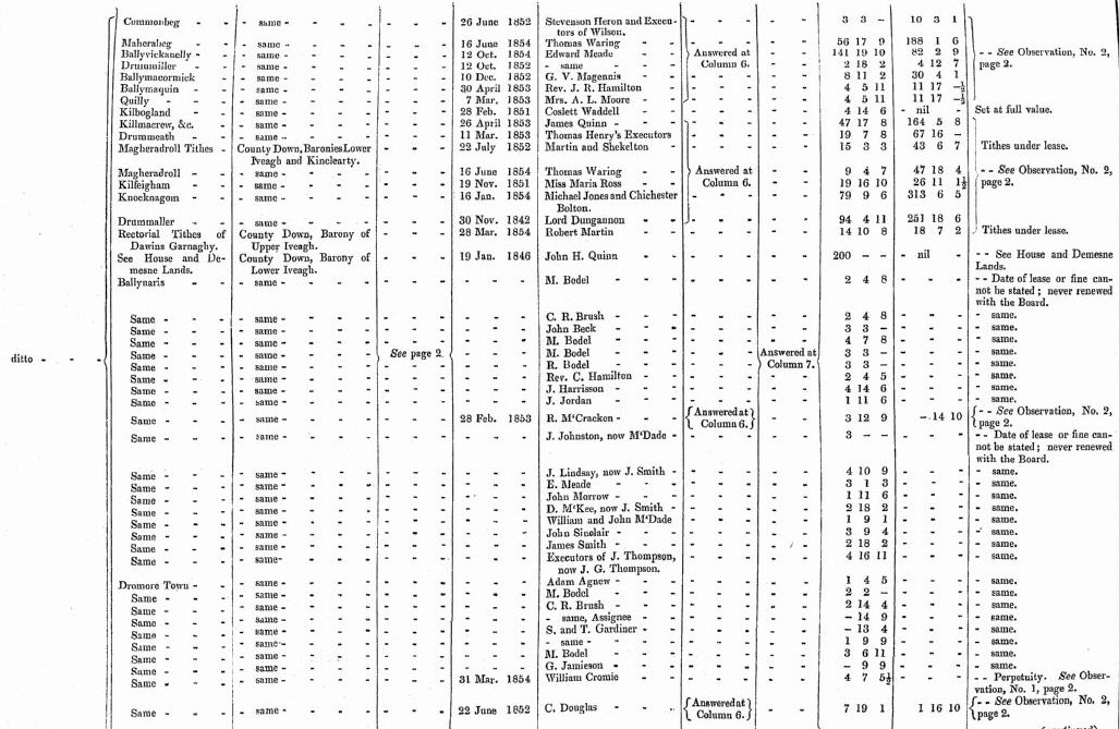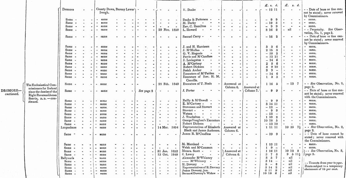 | William Cromie | Deaks | Patterson | M. Darby | Rev. C. Hamilton | L.Howard |