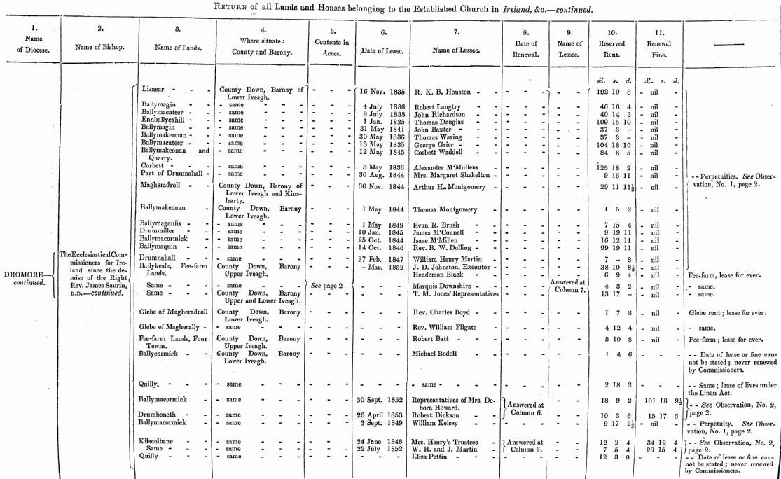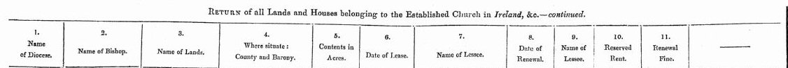 Return of Lands and Houses belonging to Established Church in Ireland 1854- 1854 ,